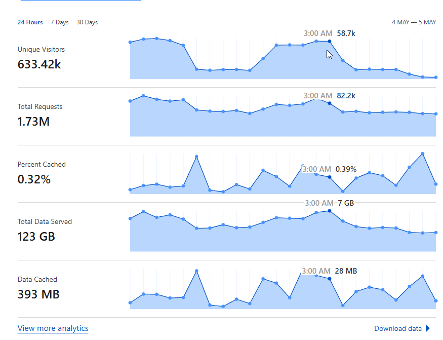 整体请求超过 8 万,数据传输超过 7G。