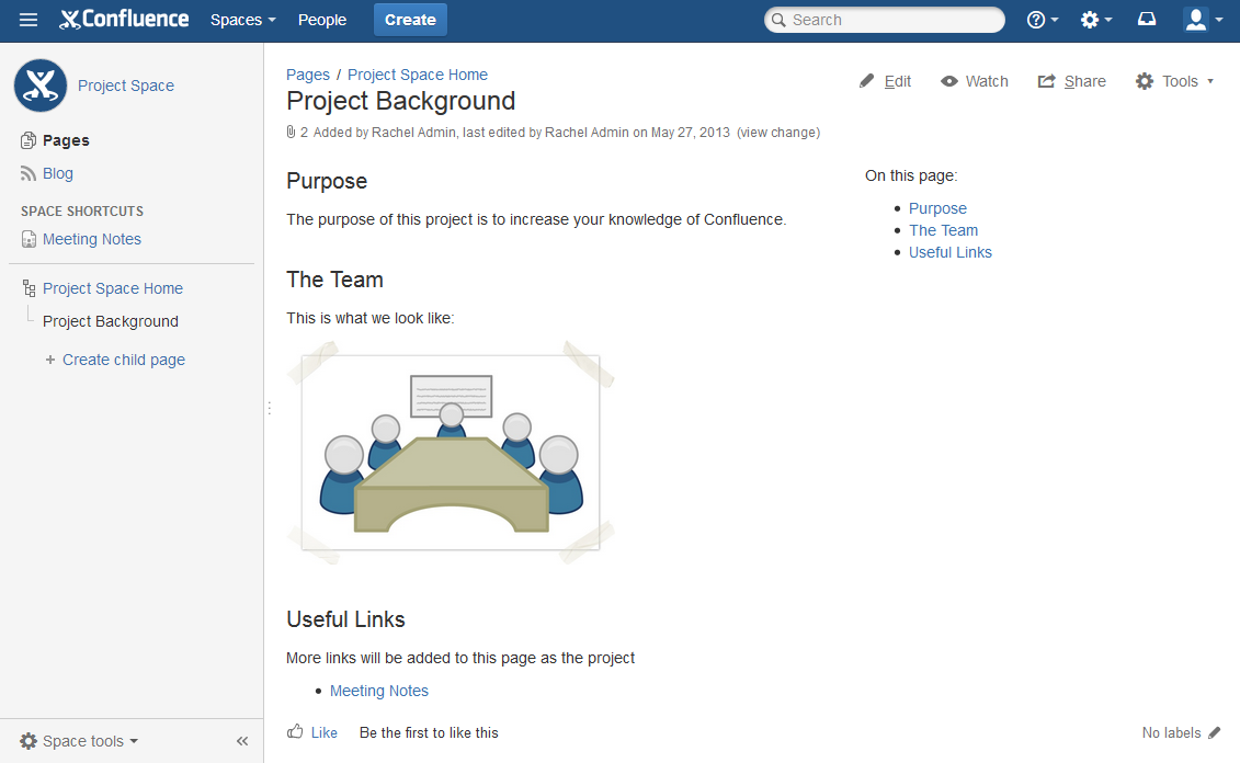 在这里,我们将会示例如何编辑你新建的页面 ‘Project Background’,同时如何向页面中增加一些内容。