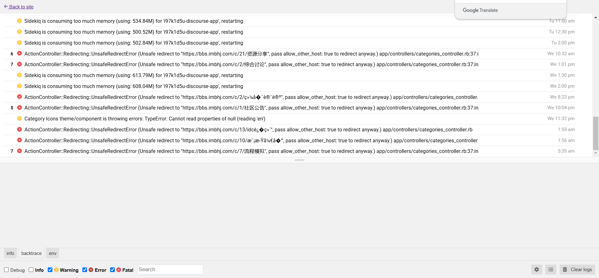 我之前也有,但是一直没详细看过日志,我也是前天调试discourse-ai插件的时候才翻出来还有个日志控制台,然后就发现了好多这种报错 ![]()