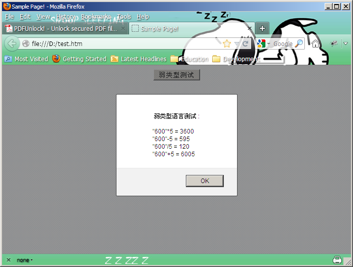 由上图中前三个表达式运算结果可知,JavaScript 脚本在解释执行时自动将字符型数据转换为数值型数据,而最后一个结果由于加号“+”的特殊性导致运算结果不同,是将数值型数据转换为字符型数据。