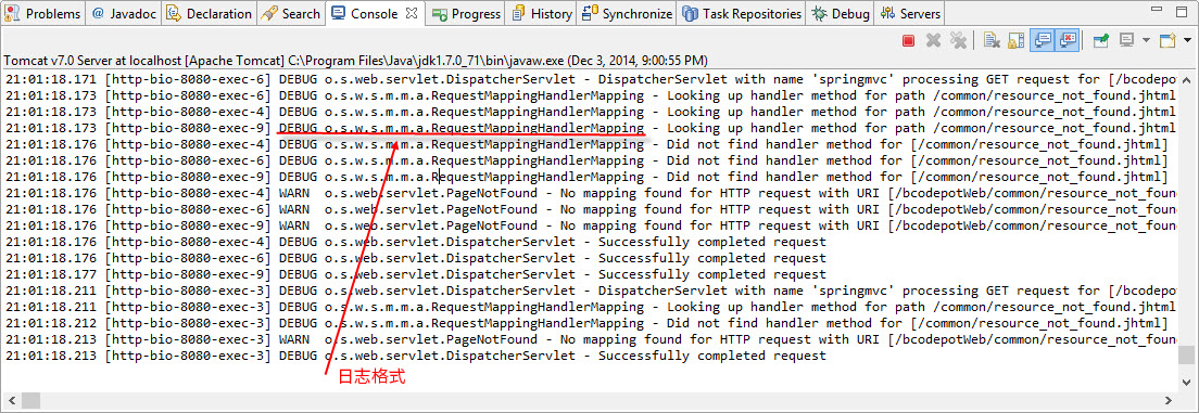 如果你看到下面的格式,那么有可能你使用的是 logback 日志。