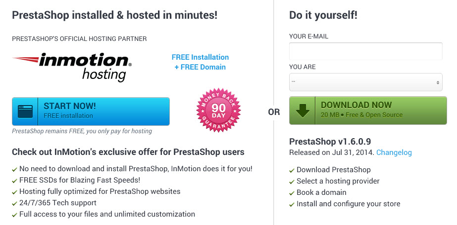 注意: PrestaShop 官方并不推荐适用任何早期版本替代当前最新的稳定版进行安装。