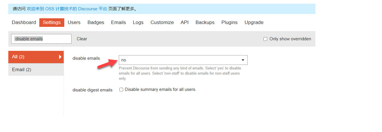 根据下面帖子的建议:How do I disable email notifications? - #2 by ondrej - Support - Discourse Meta