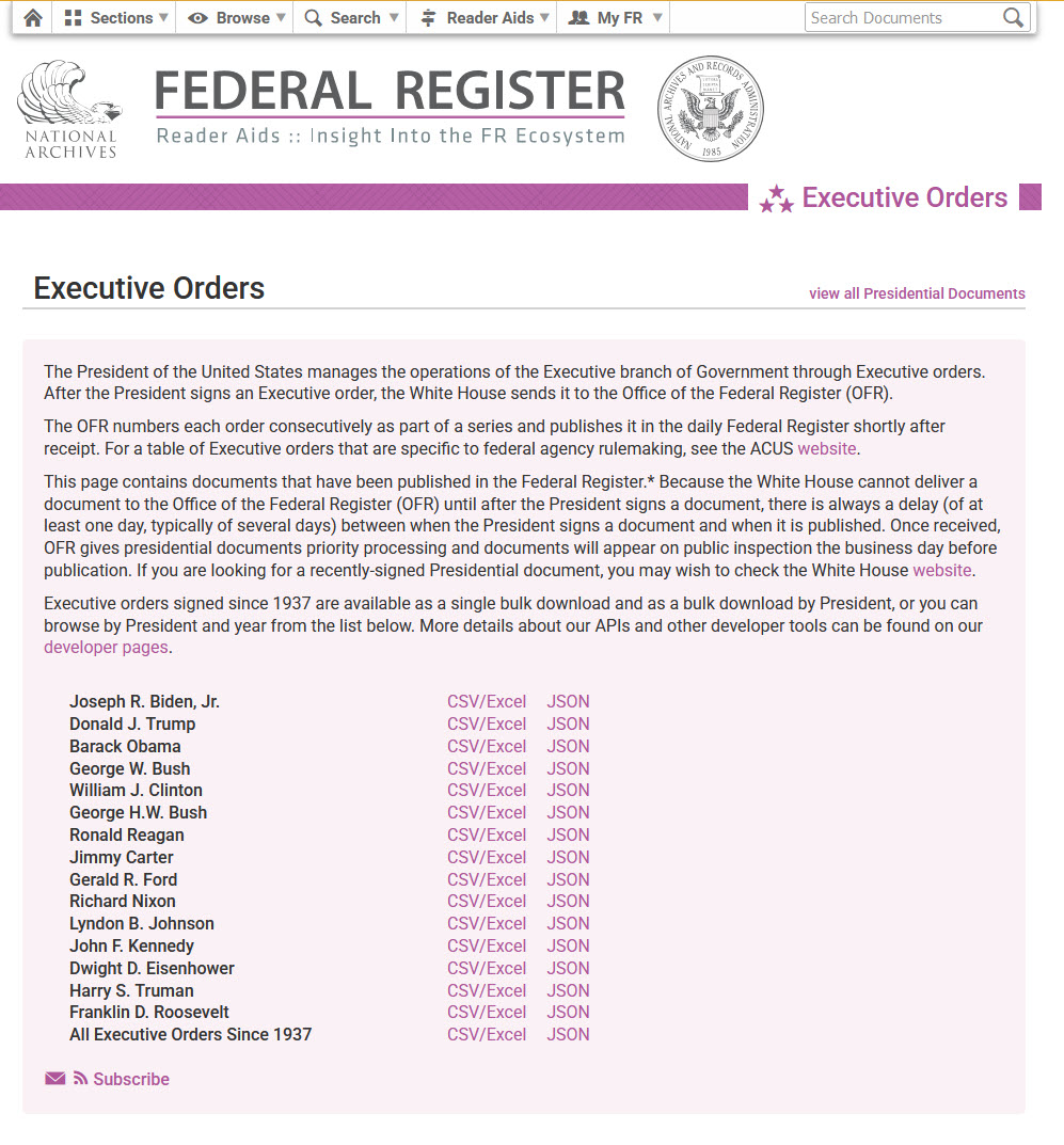 美国总统签署的所有行政令都可以在网站:Federal Register :: Request Access 上查询到。