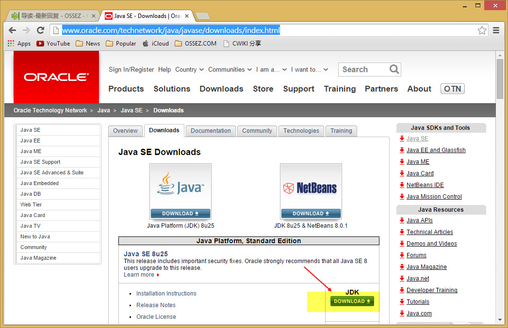 首先你需要到 Java 的官网上下载 JDK 8u25